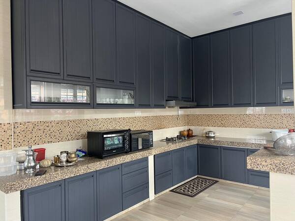 6. Dry Kitchen Cabinet Design With European Dark Grey Aluminium Door With Built-In Handle